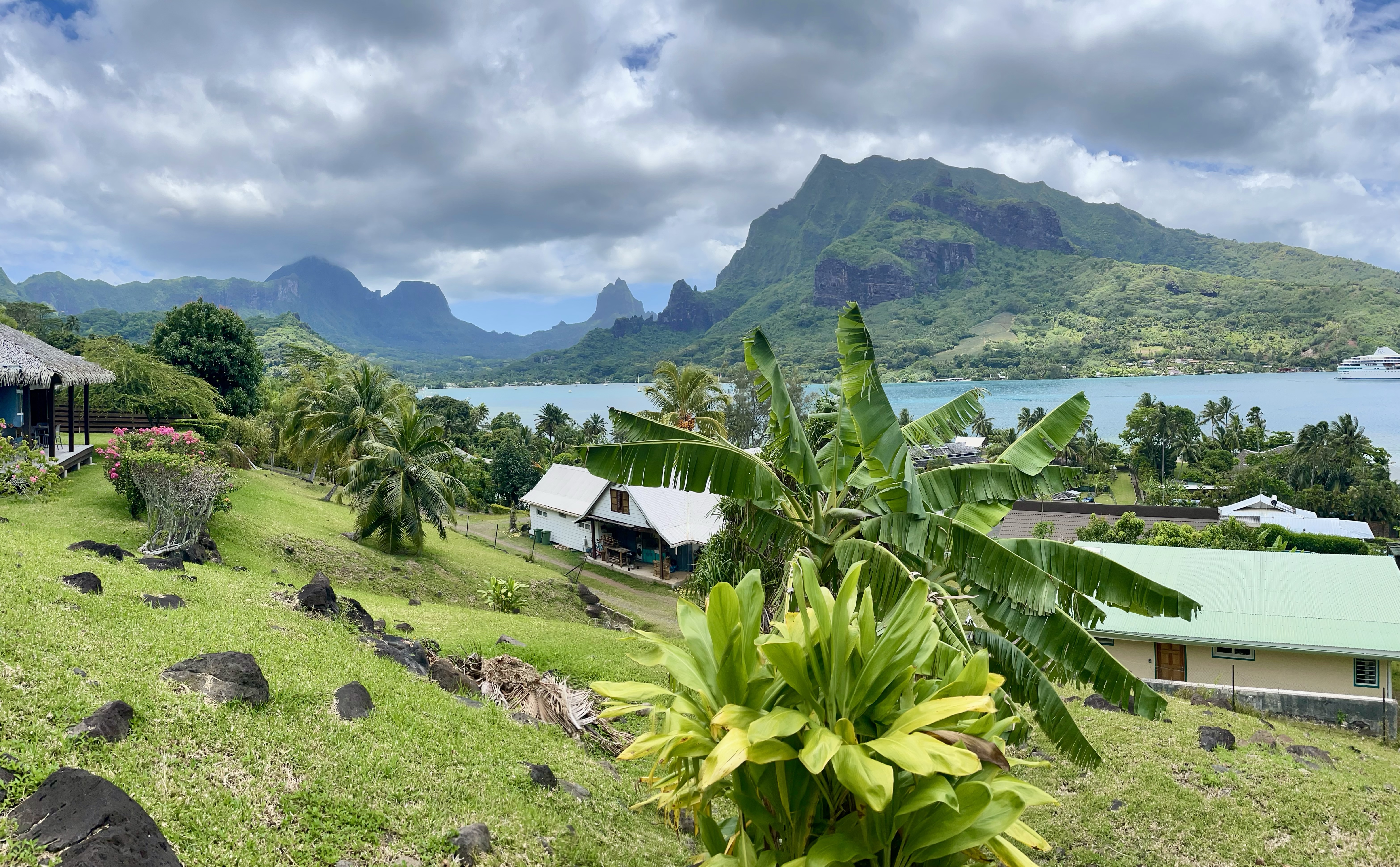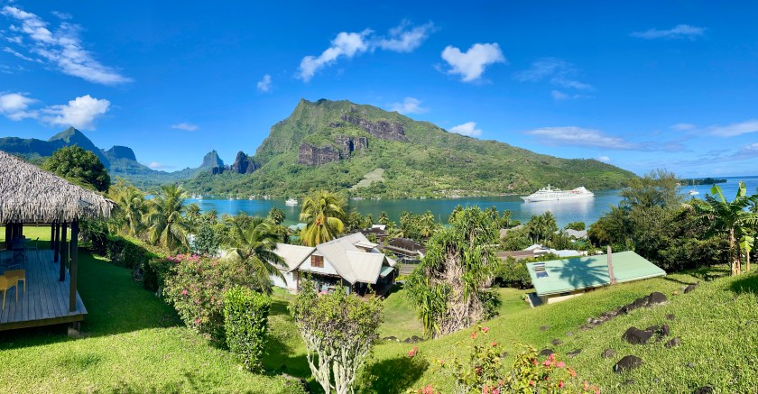 The view of Cook’s Bay from our Airbnb lanai was spectacular (check out the beginning of the video above). Every morning we would watch a cruise ship or a private yacht pull in and anchor up in the bay. The highlight was when Mark Zuckerberg’s, super impressive 300 million dollar yacht docked in the bay for twelve days. We never got to meet the social media kingpin but we did constantly spy on his yachting daily activities thru our Leica binoculars. Initially, I thought two months on Mo’orea may be a bit long but time went by so quickly as we both really appreciate the tranquility and the local Polynesian presence on Mo’orea. We will return!